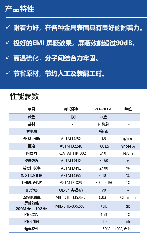 ZO-7019 是一款以鎳包碳填充單組份硅彈性體形式的高溫硫化導(dǎo)電膠水,具有良好的彈性及附著力。ZO-7019 具有良好的壓縮性和優(yōu)異的導(dǎo)電性,且在各種金屬及塑膠表面有著很好的粘接性,適合應(yīng)用電信基站、雷達設(shè)備、汽車電子、手持終端和消費電子及其他鑄造或塑膠外殼和封裝電子組件EMI 點膠成型。